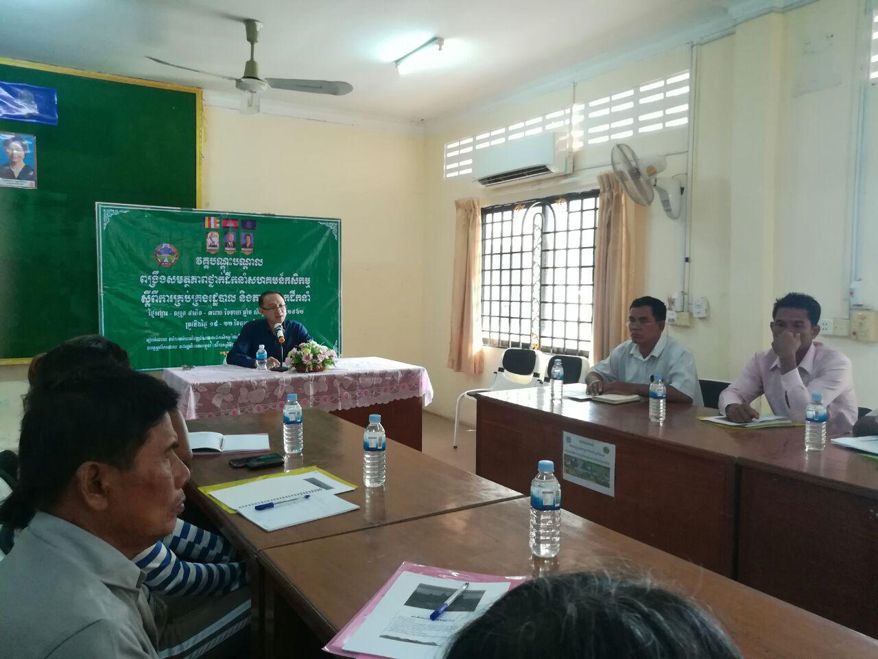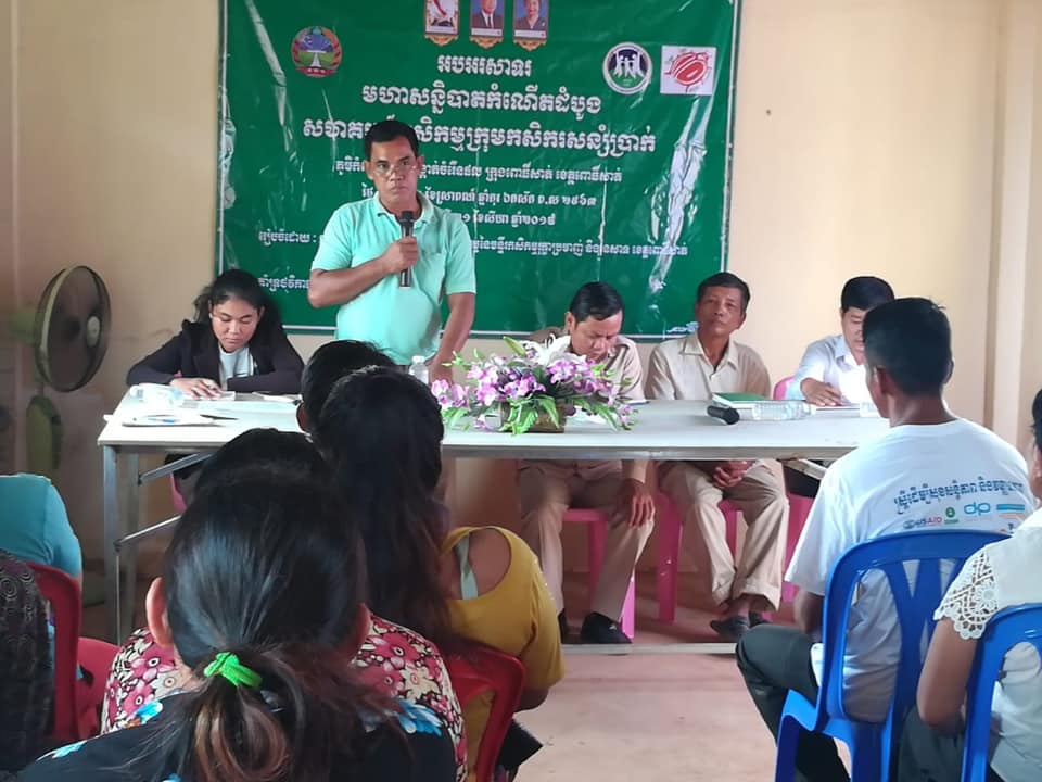 Wednesday, August 21, 2019 Mr. Sao Vannak, Chief of the Agricultural Cooperative Development Office, attended the first convention of the Agricultural Cooperative, farmers' groups, saving farmers in Kampong Storng village and Svaymeas village, Chamroeun commune, Pursat town, Pursat province. There are a total of 29 farmers, 19 females.