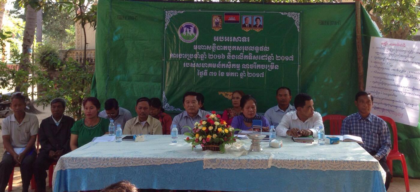 On the morning of Tuesday, January 31, 2017 organized a Conference on the employment outcome of the annual 2016 and plan to continue in 2017 Leach Rik Chamrean the agricultural cooperative in the Leach Commune Pursat province. With the participation of the Working Group, Department of Agriculture, Forestry and Fisheries Pursat Development Office of agricultural cooperative collaborate binding Life day exchange commit remember region Kravagn, the electricity Pursat 3people, the agricultural Kravagn district of 2 people,the chiefs 3 people,the agricultural cooperative Phtah Rung Reang 3 people, the agriculture’s cooperative Bakchinhean Meanchey 2 people, commission to the of Leach Rik Chamrean the agricultural cooperative 10 members, 73 passengers and the total participants numbered 101 people ( female 73 people).